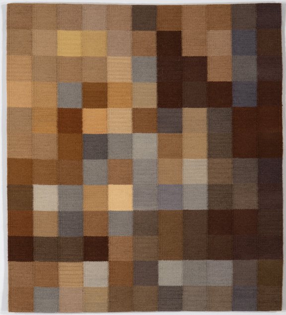 Handwoven tapestry has often been pushed to the limits of the medium's capabilities, to approach photorealism. My approach is to recognize the grid imposed by the loom. For me, this leads to an examination of the minimum bits of information that can suggest a recognizable image. For this group of tapestries, I have used photos of faces, some recognizable, and some not, and reduced the image to 20 pixels wide. This produces the weaving plan, from which I again approximate the colors for each pixel and weave, row by row a set of squares, to generate an abstracted face.